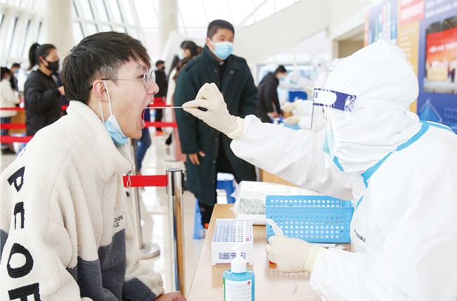 連日來,金華東陽醫(yī)護人員陸續(xù)來到一些學(xué)校給學(xué)生做核酸檢測,讓他們不出校門就拿到核酸檢測報告。大學(xué)生寒假返鄉(xiāng)高峰期來臨,面對復(fù)雜的疫情防控形勢,不少地方要求必須持核酸檢測陰性報告才能返鄉(xiāng)。(李建林)
