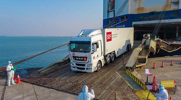 1月15日上午,載運(yùn)著6輛北京冬奧會轉(zhuǎn)播車的韓國籍“現(xiàn)代英勇”輪靠泊天津港。本批冬奧物資由天津出入境邊防檢查總站東港邊檢站完成快速入境查驗后,將直接運(yùn)送至北京冬奧場館。