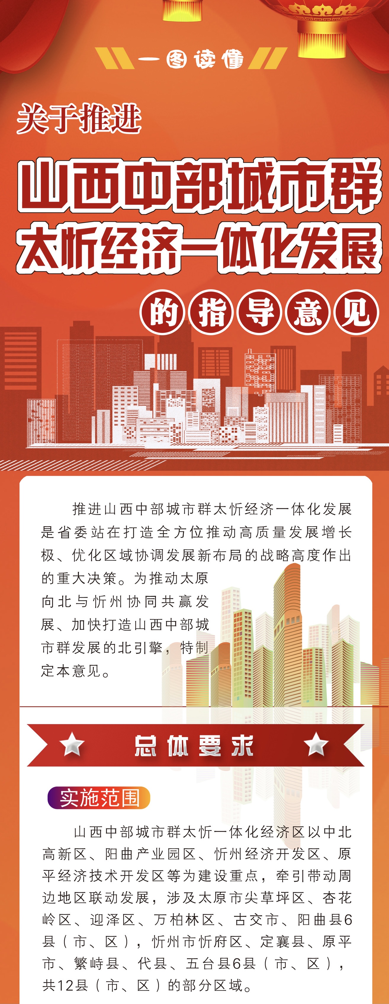 《指導(dǎo)意見(jiàn)》謀劃確定了太忻一體化經(jīng)濟(jì)區(qū)的實(shí)施范圍,提出了融入京津冀和服務(wù)雄安新區(qū)重要走廊、中部城市群發(fā)展隆起地、全省先進(jìn)制造業(yè)集聚地、世界級(jí)旅游康養(yǎng)目的地、生態(tài)文明建設(shè)示范區(qū)等五大戰(zhàn)略定位和“一軸雙核多組團(tuán)”的空間布局,分2025年、2035年兩個(gè)時(shí)間節(jié)點(diǎn)明確了發(fā)展目標(biāo),部署了六個(gè)方面的重點(diǎn)任務(wù)。