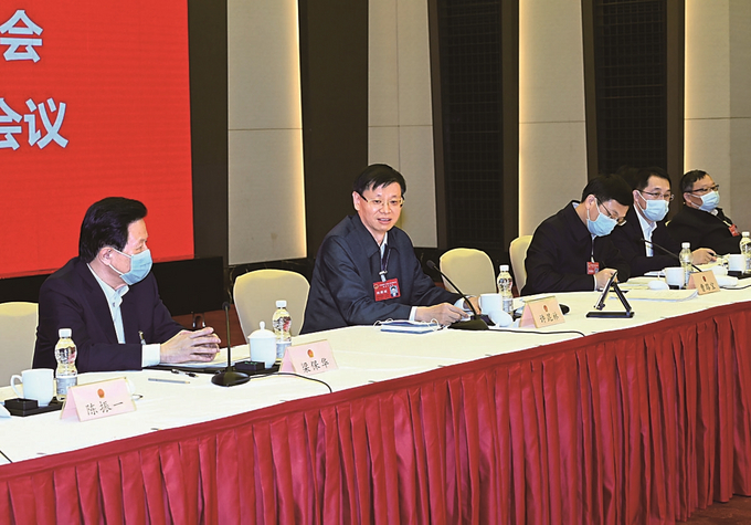 蘇州代表團(tuán)氣氛熱烈,曹路寶、吳慶文、李亞平、黃欽、徐惠民、劉慶、范力、沈彬、周榮等代表先后發(fā)言。大家一致認(rèn)為,政府工作報(bào)告堅(jiān)持以習(xí)近平新時(shí)代中國(guó)特色社會(huì)主義思想為指導(dǎo),全面貫徹黨的十九大和十九屆歷次全會(huì)精神,認(rèn)真落實(shí)習(xí)近平總書記對(duì)江蘇工作重要指示要求,緊緊圍繞省第十四次黨代會(huì)部署,體現(xiàn)了捍衛(wèi)“兩個(gè)確立”的高度自覺、服務(wù)全國(guó)大局的強(qiáng)烈擔(dān)當(dāng)、推動(dòng)高質(zhì)量發(fā)展的戰(zhàn)略定力、人民至上的深厚情懷,是一個(gè)貫徹中央精神、體現(xiàn)省委要求、符合江蘇實(shí)際、回應(yīng)人民期待的好報(bào)告。大家還圍繞打造創(chuàng)新生態(tài)、發(fā)展數(shù)字經(jīng)濟(jì)、產(chǎn)業(yè)集群升級(jí)、助推長(zhǎng)三角一體化發(fā)展、促進(jìn)共同富裕、補(bǔ)齊民生短板等提出了意見建議。許昆林邊聽邊記,與大家不時(shí)互動(dòng)交流。他說,過去一年,全省上下在以習(xí)近平同志為核心的黨中央堅(jiān)強(qiáng)領(lǐng)導(dǎo)下,高水平全面建成小康社會(huì),勝利完成省十三屆人大四次會(huì)議確定的主要目標(biāo)任務(wù),在風(fēng)浪中穩(wěn)住了發(fā)展大局、實(shí)現(xiàn)了良好開局,“強(qiáng)富美高”新江蘇現(xiàn)代化建設(shè)邁出堅(jiān)實(shí)步伐。大家提出的意見建議,我們將逐項(xiàng)梳理、深入研究、充分吸納,進(jìn)一步改進(jìn)政府工作。