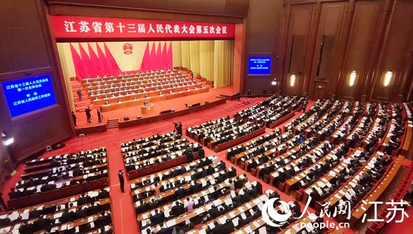 江蘇省十三屆人民代表大會(huì)第五次會(huì)議現(xiàn)場。人民網(wǎng) 耿志超攝