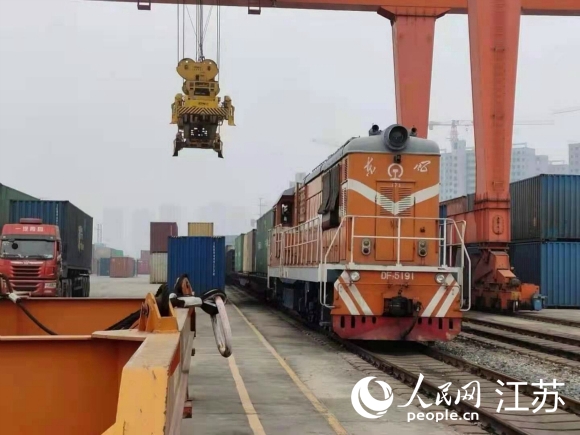 人民網(wǎng)徐州1月25日電 25日凌晨,伴隨著火車?guó)Q笛聲,搭載100標(biāo)箱1236余噸貨物的中歐(亞)班列從徐州銅山站緩緩駛出,標(biāo)志徐州銅山中歐(亞)班列正式首航。