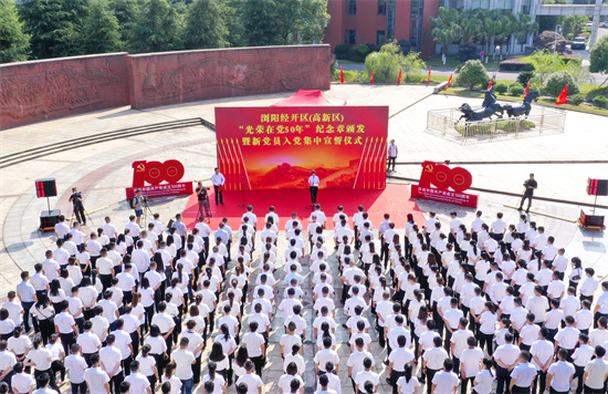 園區(qū)舉行“光榮在黨50年”紀(jì)念章頒發(fā)暨新黨員入黨集中宣誓活動。受訪單位供圖