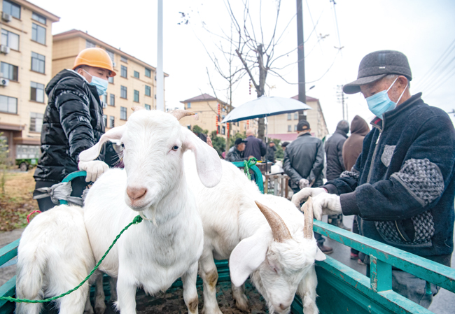 1月24日,金華市金義新區(qū)赤松鎮(zhèn)仙橋臘月第一個活羊集市開市,各地農(nóng)戶運(yùn)來自家飼養(yǎng)的活羊上市交易。(時寬兵)