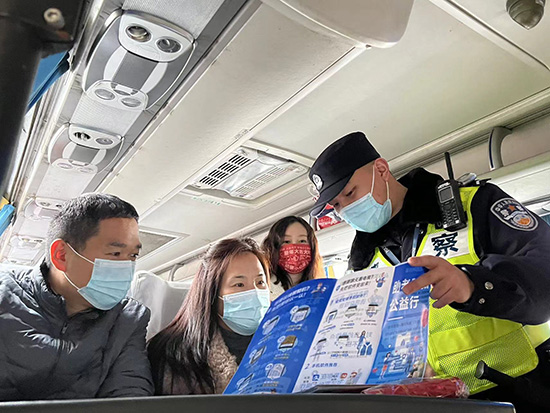 民警在汽車站做防騙宣傳。 人民網(wǎng) 王文娟攝