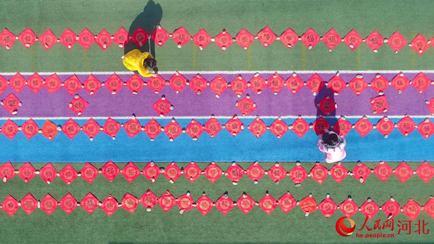 人民網石家莊1月22日電 近日,河北省唐山市豐潤區(qū)泉河頭鎮(zhèn)羅文口小學書法小組的學生們,來到羅文口村書寫春聯和“?!弊?,把新春祝福送給村民。(朱大勇)