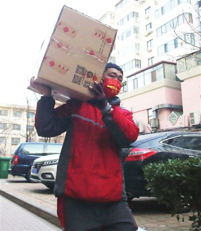 “除夕這幾天,每天送140來單?!蓖鯘声i說。他7時(shí)30分趕到京東王頂?shù)陶军c(diǎn),開啟一天的工作。春節(jié)期間送的快遞件80%跟吃有關(guān),米面糧油奶蛋菜水果都有,大到5箱70多公斤的礦泉水,小到半公斤的車?yán)遄?。小王深知,單單件件滿載著溫暖與情意,必須在濃濃的節(jié)日氛圍里準(zhǔn)時(shí)送達(dá)。他也因此成了那一片一些人家正月初一第一個(gè)敲門拜年的人。