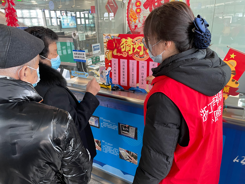 乘客們停下腳步,在工作人員的指引下猜起燈謎。徐濟(jì)豪攝