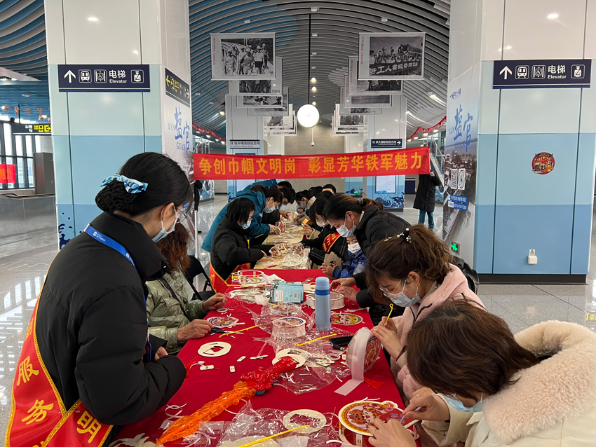 鬧元宵、扎虎燈、猜燈謎……節(jié)日里的杭海城際鐵路各車站熱鬧非凡。在張燈結(jié)彩的海寧海昌路站,工作人員熱情邀請(qǐng)乘客參加猜燈謎活動(dòng)?;顒?dòng)中,乘客們有的凝眉思考,有的積極討論,歡歡喜喜猜著燈謎,為節(jié)日里增添了一份歡樂和喜悅。海寧鹽官站又是另一番歡樂的場景,工作人員親自動(dòng)手,制作出一盞盞漂亮的虎燈,乘客們紛紛圍攏過來駐足觀看,希望在新的一年里贏得“好兆頭”,現(xiàn)場一片其樂融融,歡聲笑語。