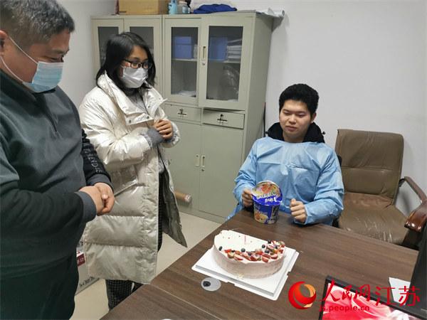 不過(guò),讓楊一波難忘的是,他在疫情防控一線過(guò)了一個(gè)有意義的生日。2月16日,是楊一波26歲生日,但他不能和自己的家人一起。就在他忙得不可開交時(shí),他的女朋友到采樣點(diǎn)給他送來(lái)了生日蛋糕。在大家的祝福聲中,他一口吃著泡面,一口吃著蛋糕。緊張的疫情防控形勢(shì)讓他來(lái)不及感動(dòng),匆匆又奔赴防控一線。