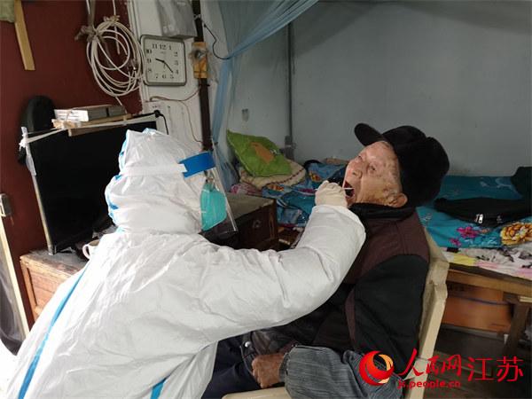 根據(jù)蘇州市吳江區(qū)安排,該區(qū)黎里鎮(zhèn)所有居民都要到指定地點(diǎn)進(jìn)行核酸檢測(cè)。然而,港南村89歲的村民干阿林因?yàn)樾袆?dòng)不便長(zhǎng)期在家,無(wú)法趕到指定地點(diǎn)。周邊像干阿林這樣行動(dòng)不便的老人有22名。