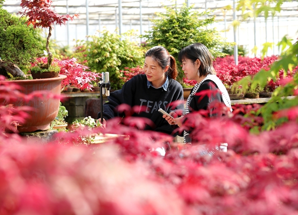 堰下村只是沭陽(yáng)縣大力推動(dòng)“產(chǎn)業(yè)+創(chuàng)業(yè)+就業(yè)”的縮影。沭陽(yáng)縣發(fā)改局局長(zhǎng)喬德素介紹,截至目前,沭陽(yáng)縣吸引花木生產(chǎn)核心區(qū)70%以上的大學(xué)畢業(yè)生選擇返鄉(xiāng)創(chuàng)業(yè),當(dāng)?shù)剡€與淘寶合作建立“淘寶·沭陽(yáng)直播基地”,吸引了一批新生代參與到花木產(chǎn)業(yè)鏈中。當(dāng)?shù)赝ㄟ^(guò)實(shí)施“遠(yuǎn)程網(wǎng)店”工程,讓農(nóng)民“觸網(wǎng)”,將手機(jī)變身“新農(nóng)具”、直播變成“新農(nóng)活”,直播帶貨成為了沭陽(yáng)花木銷售的新時(shí)尚。