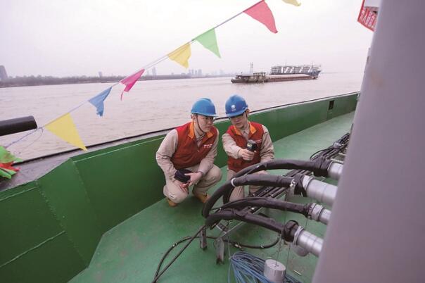 22日,長江流域最大載重噸位的電動貨船“船聯(lián)壹號”在南京成功首航。