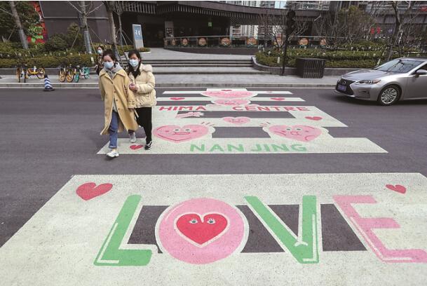 南京雨花臺區(qū)設(shè)置“愛心斑馬線”引人注目