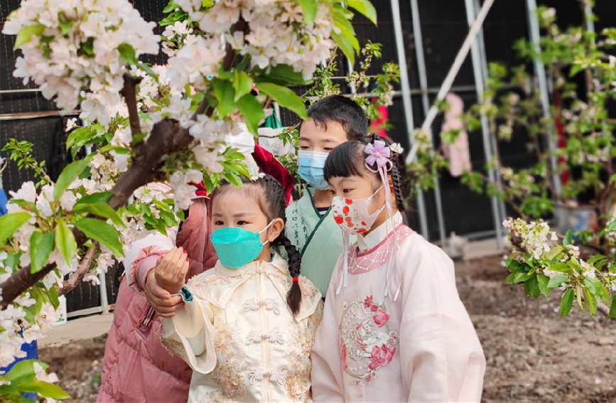 走進(jìn)茶淀街道孟家瞿卩村種植戶于長晶的大棚,仿佛置身于花海之中。大棚外春寒料峭,大棚內(nèi)溫度適宜、花開正艷。櫻桃花盛開的美景吸引了不少游客前來打卡拍照,有的小游客為了拍出好看的照片,還特意穿來漢服來和櫻桃花合影拍照。農(nóng)戶搶抓農(nóng)時,辛勤勞作,確保今年的櫻桃豐產(chǎn)豐收?!皺烟夜芾硇枰饲诳欤荒芡祽??!庇陂L晶一邊忙著給櫻桃樹修剪枝條一邊說道。這幾天,她和家人每天都很忙碌,盡管勞累,但心里卻很高興。于長晶說:“我們今年借助科學(xué)管理,有的大棚里的櫻桃已經(jīng)結(jié)出果實(shí)。大概到3月下旬,大片櫻桃都成熟了,到時候游客就可以來采摘了?!?/p>