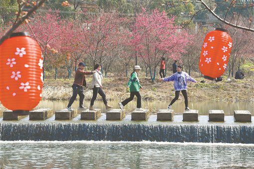 2月27日,湘潭市岳塘區(qū)昭山鎮(zhèn)七星村,市民在田園山水間游玩。近日,省內各地春意盎然、天氣晴好,市民出游熱情高漲,近郊游備受市民青睞。記者 徐行 攝