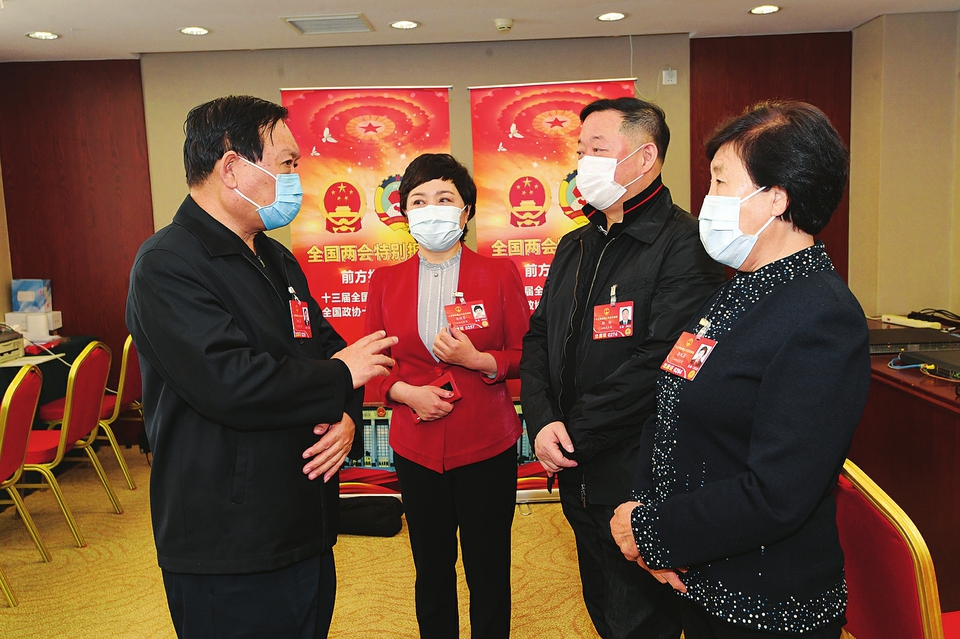 3月6日上午,山西代表團(tuán)舉行小組會議,審議政府工作報告。代表們圍繞政府工作報告內(nèi)容和民生熱點(diǎn)話題,直抒己見,暢所欲言。(記者李聯(lián)軍攝)