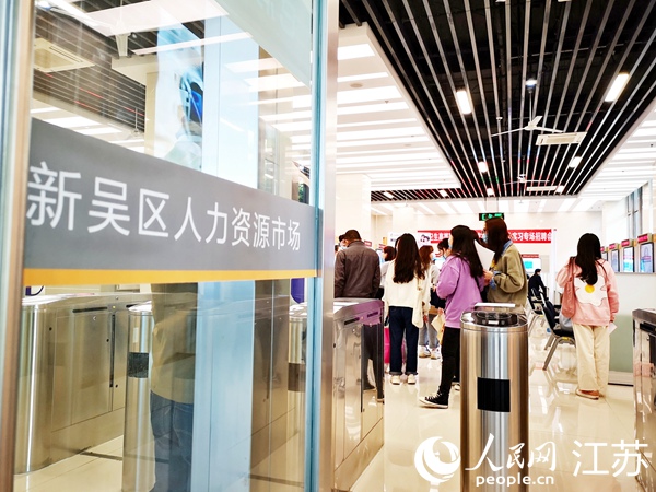 在無錫市新吳區(qū)人力資源市場,不少年輕人前來咨詢就業(yè)落戶事宜。儲霞攝