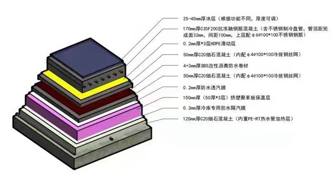 混凝土冰板層這道工序尤為重要,施工也最為艱苦。對(duì)李燕敏來說,冰板構(gòu)造施工就如同制作“千層糕”:從下向上鋪設(shè)加熱層、防潮隔汽層、保溫層、隔離層、防水層、混凝土冰板層……55厘米厚的混凝土整整有9層,整個(gè)地面平整度要達(dá)到設(shè)計(jì)要求的精度,每個(gè)環(huán)節(jié)不容有絲毫閃失。