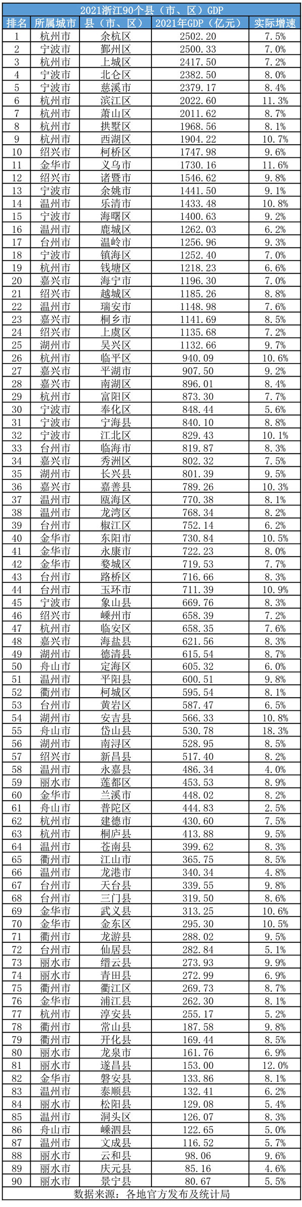 2021年,浙江7個GDP超2000億元的縣(市、區(qū))被杭甬雙城包攬,分別占據4席、3席。