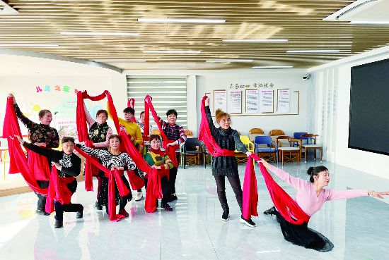 3月10日,金華開發(fā)區(qū)江南街道南苑社區(qū)新時代文明實踐站一樓大廳,南苑社區(qū)藝術(shù)團(tuán)“幸福里”舞蹈隊的阿姨正在排練舞蹈。今年初,南苑社區(qū)新時代文明實踐站重新啟用,老年人可以在這里看書、聽?wèi)颉裎幕钬S富多彩。(時寬兵)