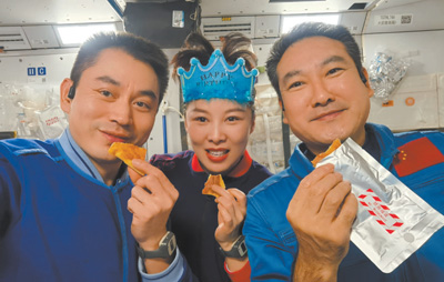 執(zhí)行迄今時間最長一次太空飛行,神舟十三號航天員趕上了第一次在太空跨年,第一次在空間站過春節(jié)。在地面團隊的精心保障下,航天員們除夕夜為人們送上來自太空的新年祝福,在空間站度過了年味十足、充實精彩的虎年春節(jié)。從太空出艙、“天宮課堂”開講,到手控遙操作完成貨運飛船與空間站組合體交會對接試驗,從中國女航天員首次太空漫步,到3名航天員太空飛行累計超100天,太空“出差”期間,航天員們開展了一系列空間科學實驗和技術(shù)試驗,刷新了一個又一個中國航天紀錄,為中國空間站正式建成打下堅實基礎(chǔ)。