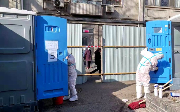剛封閉不久,北新橋街道后永康胡同東口便增加了2座臨時(shí)單坑的移動(dòng)公廁,為后永康胡同1號院、11號院隔離居民和防疫人員提供服務(wù);民旺社區(qū)周邊胡同連夜搭建了12座單坑臨時(shí)移動(dòng)公廁,在民旺南胡同為底商設(shè)置2座單坑臨時(shí)移動(dòng)公廁;在北新橋育樹胡同周邊,11座移動(dòng)公廁也安裝完成。