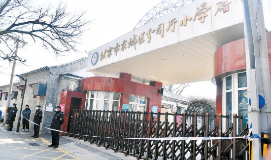 東城區(qū)分司廳小學(xué)門口已經(jīng)拉起警戒線,學(xué)校暫時停課。本報記者 蔡代征攝