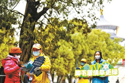據(jù)天壇公園相關(guān)負責人介紹,為了強化文明游園理念,盡可能地減少園內(nèi)不文明游園行為,天壇公園全面啟動春季文明游園宣傳行動。天壇公園由75名職工組成巡視固定崗,每日全天候在園內(nèi)重點位置巡視不少于96次,同時出動6輛電動巡邏車、3輛電動巡邏自行車對全園及重點區(qū)域加強巡視值守;在周末及節(jié)假日由首都公共文明引導員、社會志愿者組成流動哨,重點開展不文明游園行為勸導引導工作。