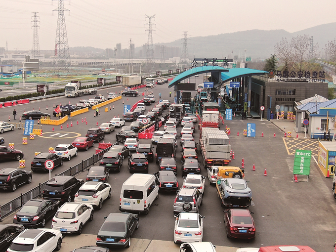 滬寧高速南京收費(fèi)站執(zhí)法人員查驗(yàn)駕乘核酸陰性證明