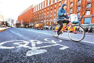 王府井慢行系統(tǒng)改造升級后,市民騎車經(jīng)過 攝/本報(bào)記者 黃亮