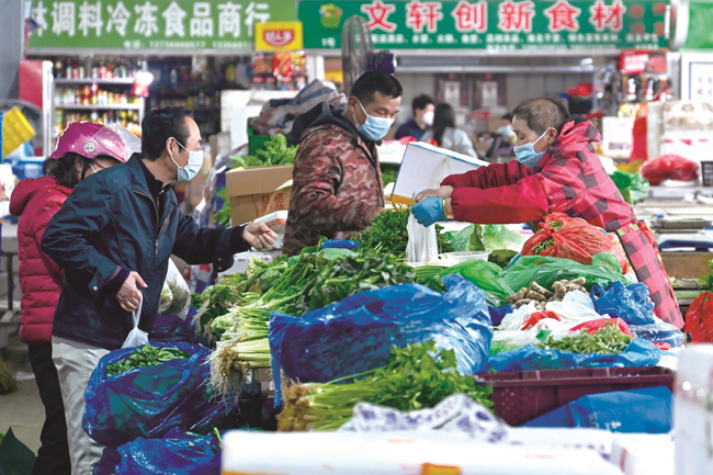 3月30日,在嘉興南湖區(qū)荷花堤臨時菜場,疫情防控人員嚴(yán)格落實(shí)防疫措施,凡是進(jìn)入菜場必須規(guī)范戴好口罩,掃行程碼,出示行程卡,測量體溫。菜場內(nèi)各類攤位貨物充盈,價格平穩(wěn),讓老百姓的“菜籃子”又穩(wěn)又安全。(張啟帆)