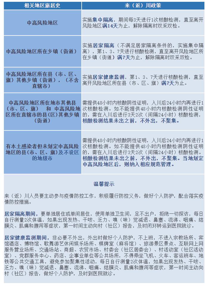 3、對(duì)有上海旅居史,于3月14日至23日的來(lái)(返)川人員,已解除管控的再進(jìn)行1次核酸檢測(cè)(3月24日至28日的來(lái)(返)川人員繼續(xù)執(zhí)行居家健康監(jiān)測(cè)相關(guān)要求)。
