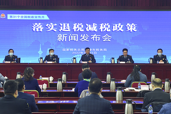 天津市稅務(wù)局黨委委員、副局長、市局退稅減稅辦主任付強(qiáng)通報(bào)了天津市稅務(wù)系統(tǒng)落實(shí)退稅減稅降費(fèi)政策的總體部署,天津市稅務(wù)局黨委委員、總經(jīng)濟(jì)師、新聞發(fā)言人張連祥主持發(fā)布會,并就組織開展稅收宣傳月系列活動進(jìn)行介紹,相關(guān)業(yè)務(wù)處室圍繞更好落實(shí)新的組合式稅費(fèi)支持政策、提升稅費(fèi)服務(wù)質(zhì)效作了具體說明。