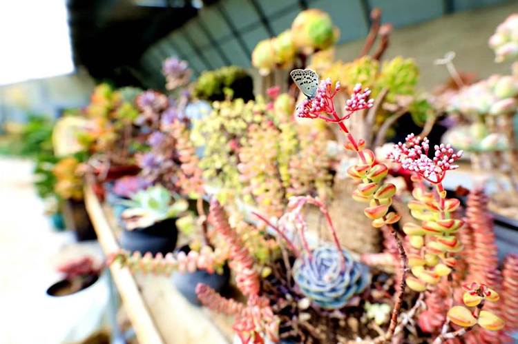 “目前我們基地投資建設(shè)的6個(gè)農(nóng)業(yè)溫室大棚,占地面積6700平方米,可售多肉品種達(dá)170余種,春秋兩季是多肉植物生長最旺盛的季節(jié),溫差大,且顏色鮮艷。目前,我們的主要工作就是對多肉植物進(jìn)行繁殖,根據(jù)植物種類的不同,繁殖的方法主要有播種繁殖、扦插繁殖、分株繁殖以及嫁接繁殖?!倍嗳饣刎?fù)責(zé)人路秀華介紹說。