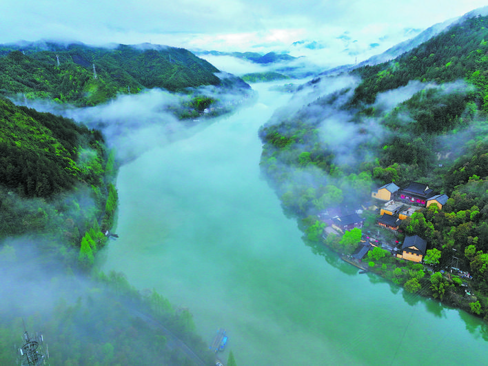 近日,多變的天氣使麗水云和湖出現(xiàn)“奇霧”景觀,沿岸的村莊、樹(shù)木、田野在清晨的薄霧中若隱若現(xiàn),猶如一幅朦朧的山水畫(huà)卷。(劉海波)