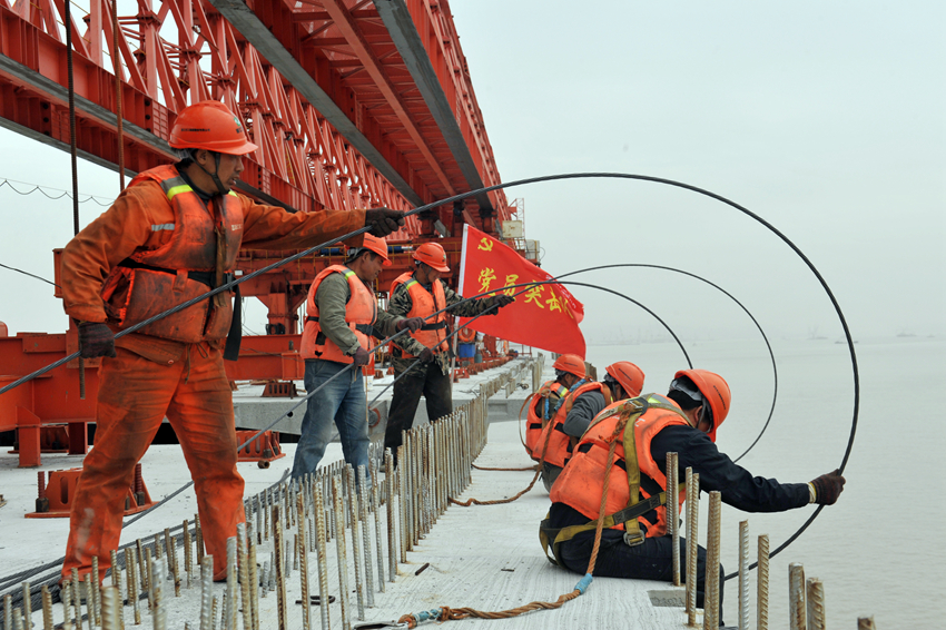 黨員先鋒突擊隊在魚山大橋建設現(xiàn)場。舟山市委組織部供圖