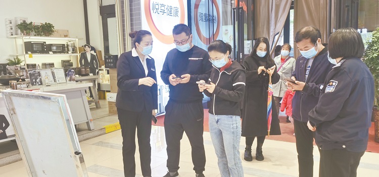 同時,張紅巖每天還要查看門店的消毒情況及員工的行程碼、健康碼,督促他們做好測量體溫工作,并通過微信工作群宣傳衛(wèi)生防疫知識及注意事項。