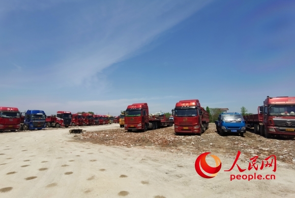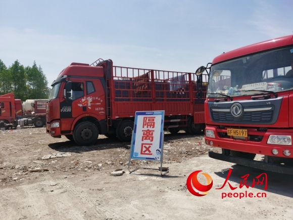 南通市崇川區(qū)陳橋街道疫情防控外來(lái)貨車(chē)集中停車(chē)點(diǎn)。人民網(wǎng)記者 王繼亮攝