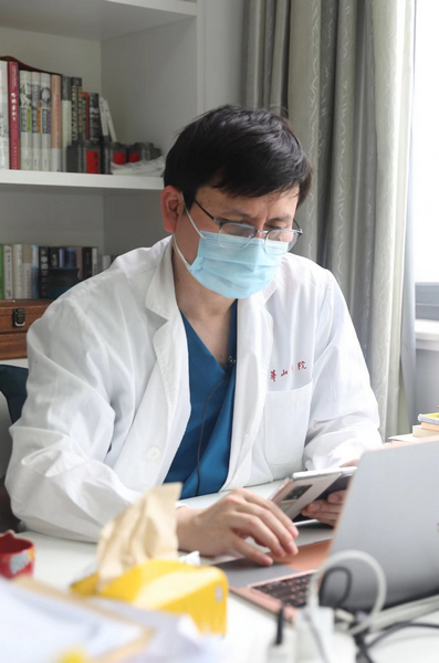 緊接著,張文宏和100余位專家視頻連線,會診各定點醫(yī)院的重癥患者。他在線聽到了好消息,“有一例危重型患者,兩次核酸陰性;還有3例基礎(chǔ)病重癥患者由原先的基礎(chǔ)病重癥轉(zhuǎn)為輕癥”……連線結(jié)束,他快速接受了大江東工作室的專訪,后面,他還有一場專家討論會要參加。