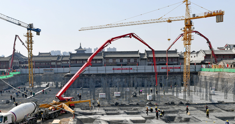 4月10日,大同古城戶部角綜合文旅項目工地上,機器轟鳴。大同市統(tǒng)籌經(jīng)濟社會發(fā)展和疫情防控工作,在落實各項防疫措施的同時,復(fù)工復(fù)產(chǎn)也在緊張進行中。李冬賓 攝