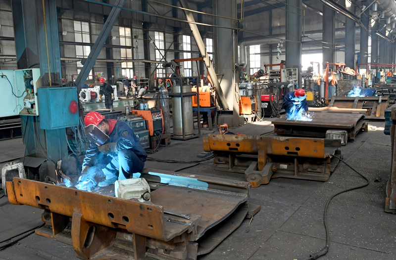 4月16日,大同市同華礦機制造有限責(zé)任公司生產(chǎn)車間一景。大同市對各生產(chǎn)企業(yè)工作人員進行閉環(huán)管理,做到疫情期間不停工。李冬賓 攝