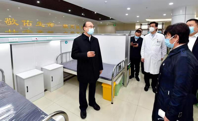 許勤來到在黑河市第一人民醫(yī)院基礎(chǔ)上改造的方艙醫(yī)院,了解建設(shè)管理等情況