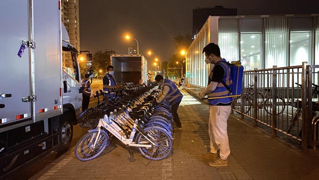 哈啰單車北京團(tuán)隊(duì)負(fù)責(zé)人胡濤介紹,近期團(tuán)隊(duì)臨時(shí)增加42名運(yùn)維人員和12輛調(diào)度車輛投入抗疫保障行動(dòng)。對(duì)每輛共享單車在出庫(kù)、入庫(kù)、調(diào)運(yùn)等環(huán)節(jié)中實(shí)施100%消毒,在重點(diǎn)景區(qū)、商圈、寫字樓以及北京站、王府井、崇文門、望京等軌道交通站點(diǎn),每日分早中晚三個(gè)時(shí)段進(jìn)行無差別消殺。