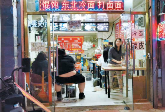 打開大眾點評,先選一些口碑爆棚的小吃打包,然后帶到周邊餐館里再點些菜,正餐、小吃都不耽誤,這是不少年輕人逛街的習(xí)慣。記者探訪發(fā)現(xiàn),目前在沿街大多數(shù)餐館不提供堂食服務(wù)的情況下,網(wǎng)紅小吃窗口前的顧客無處可去,久久不散。很多人在小吃窗口前“就地消化”,烤串、蛋糕,這些小吃食用方便,有沒有桌子、餐具都無所謂,在小吃窗口前找個椅子坐下,形成路邊大排檔,沒有桌子間隔著,用餐人員挨得更近了。