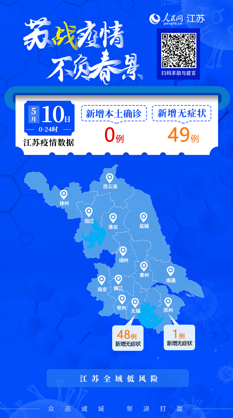 5月10日江蘇新增本土無(wú)癥狀感染者49例 無(wú)新增本土確診病例