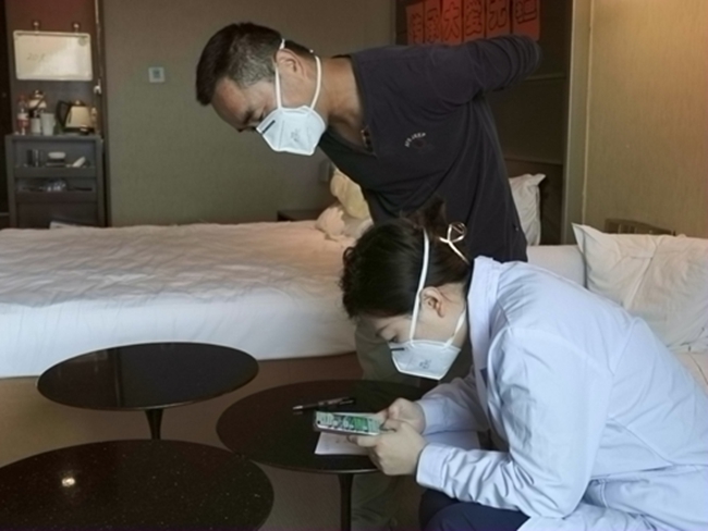 5月4日晚6點多,從香港求醫(yī)歸來的張氏夫婦懷抱著精神萎靡的哼哼,由機場大巴閉環(huán)轉(zhuǎn)運至海淀區(qū)紅杉集中醫(yī)學隔離觀察點,晚上8點半,到達酒店辦理入住。來自四季青醫(yī)院的張龍珍負責接待工作,豐富的工作經(jīng)驗讓她第一時間注意到了被母親抱在懷中的哼哼,臉有一些不正常的浮腫,便上前詢問情況,得知他患有神經(jīng)母細胞瘤并轉(zhuǎn)移至腦部及全身時,張龍珍便親自照顧起了這一家人,一步一步指導哼哼爸爸掃碼,填寫個人信息,并在前臺開放綠色通道,快速為他們辦理入住。