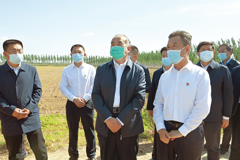 五月十七日下午,省委書(shū)記林武來(lái)到汾陽(yáng)市賈家莊鎮(zhèn)古浮圖村,走進(jìn)田間察看玉米、大豆幼苗長(zhǎng)勢(shì)和土壤墑情。記者史曉波攝