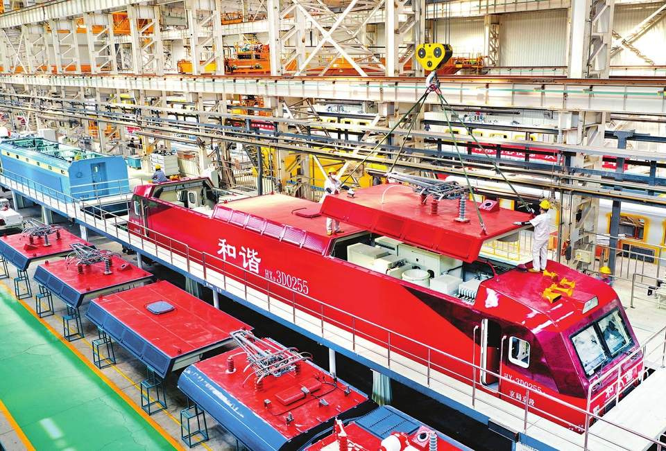 5月20日,在中車(chē)太原公司和諧型機(jī)車(chē)總組裝生產(chǎn)線,工人們正在吊裝電力機(jī)車(chē)頂蓋。今年以來(lái),中車(chē)太原公司克服疫情對(duì)生產(chǎn)的影響,強(qiáng)化跟蹤工序進(jìn)度,全面排查整治安全質(zhì)量薄弱環(huán)節(jié),確保各個(gè)工序安全高效、工藝質(zhì)量可靠。目前,公司已實(shí)現(xiàn)電力機(jī)車(chē)檢修產(chǎn)品交直流并舉的重大跨越。(記者劉通攝)