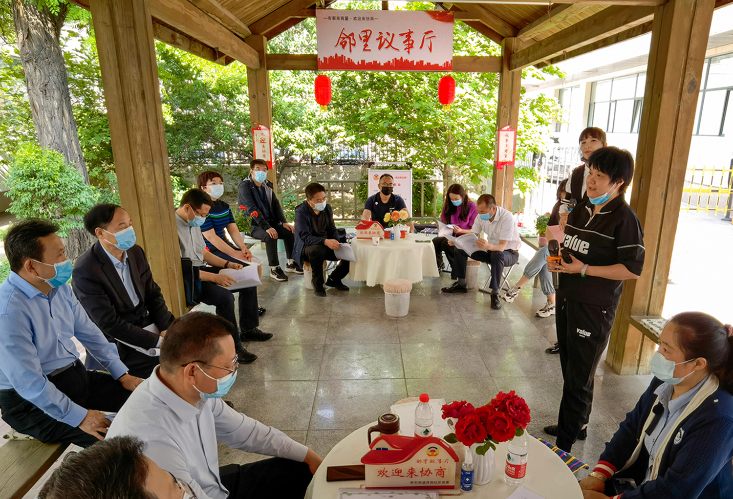 初夏。太原市迎澤區(qū)橋東街道并四社區(qū)新生里89號(hào)院,文化長廊里支起了三張“議事桌”。兩側(cè)長廊不夠坐,前排“見縫插針”擺上了小馬扎,來自街道社區(qū)、物業(yè)、居民和政協(xié)委員等各方面的代表圍坐在一起,“鄰里議事會(huì)”開場(chǎng)了。